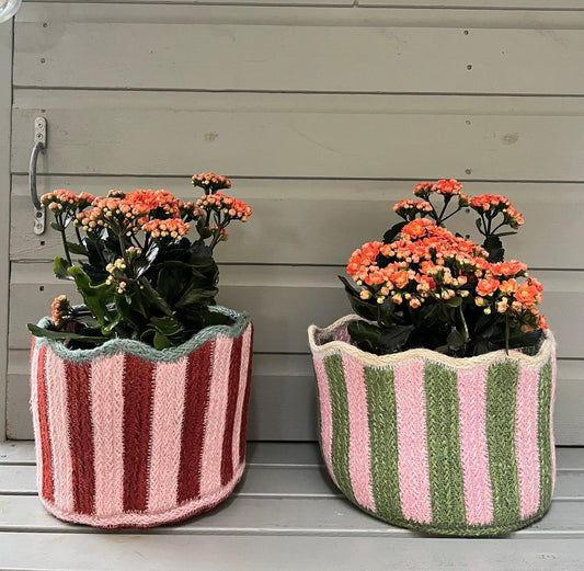 Green and Pink Striped Fluted Basket