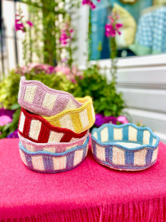 Pink and Red Striped Fluted Basket